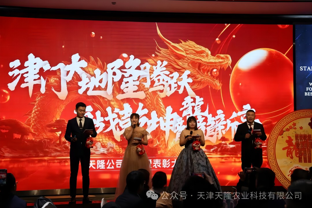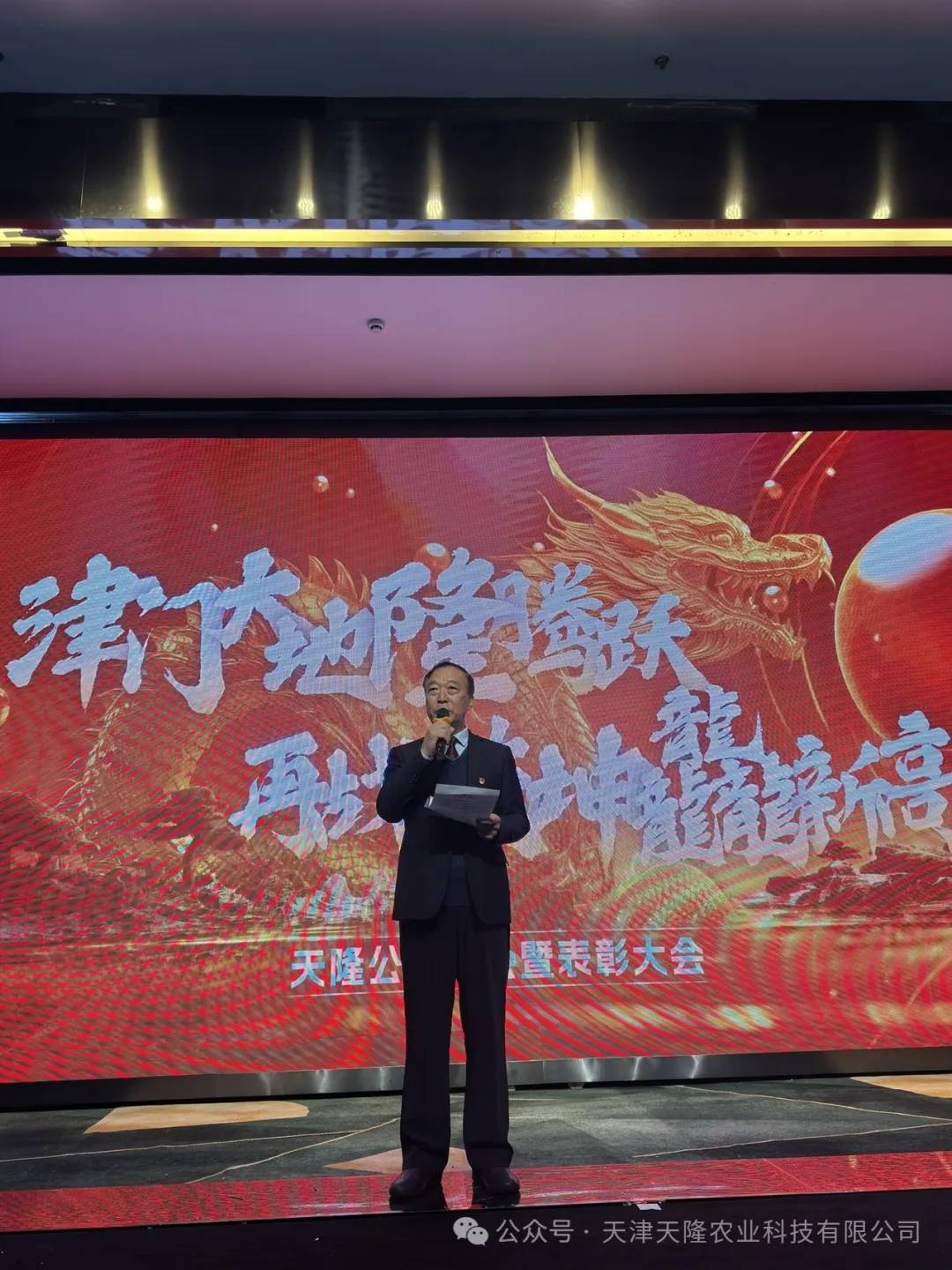 津门大地隆腾跃,再战乾坤龘新高!2024年1月19日16时08分天隆公司年会暨颁奖典礼正式开始!公司党支部书记杨春连同志开场,包万军董事长致辞!董事长说“过去的一年天隆公司的管理团队及我们的科研人员付出了艰苦的努力,农业是一条艰辛之路,也是一条希望之路,更是国家立足的根本!天隆公司用20多年的努力及汗水汇集力量,2024年将会是天隆公司蓄力而发的一年,也是我们走向辉煌的新征程!”