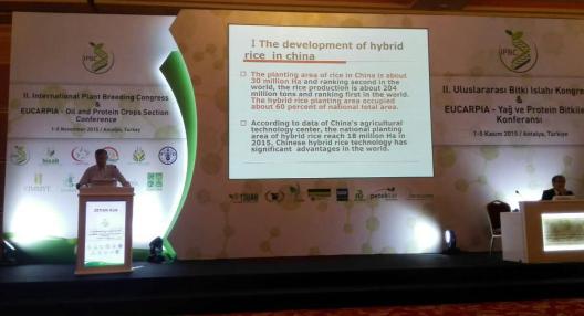 2015年11月1日-5日,押球官网技术总监、国家粳稻工程技术中心主任华泽田教授和李德华研究员应邀赴土耳其安塔利亚市参加第二届国际作物育种大会(IPBC),此次大会是由土耳其作物育种家协会BISAB与其他一些国际性农业机构共同联合举办的。