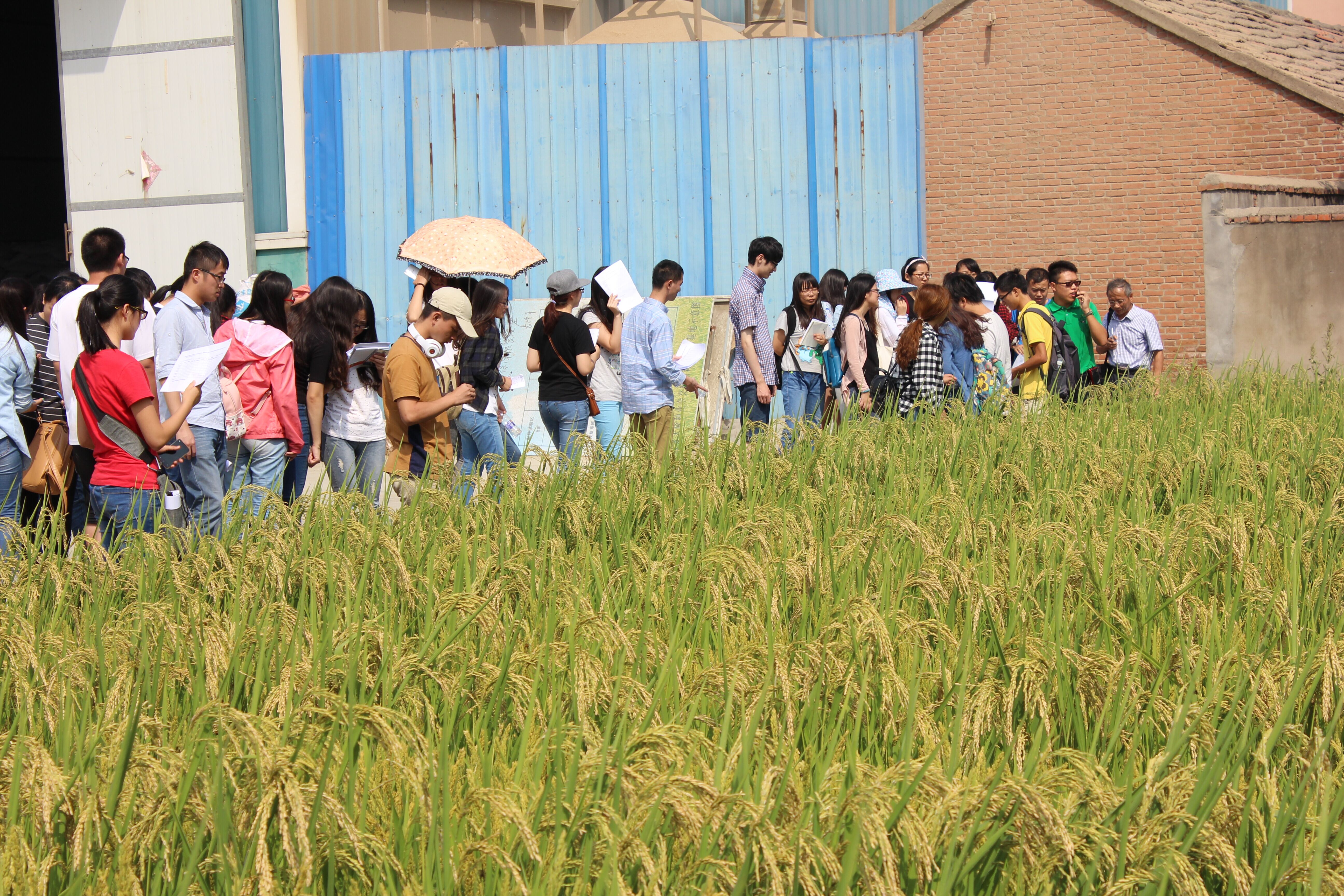 师生一行参观了我司水稻三系制种田、水稻试验基地以及种子加工车间等,由天隆公司殷经理等同事向师生们介绍了种子加工的各个环节、烘干塔的使用,制种田间的各项品种及种制技术,试验基地的示范品种等水稻专业知识。