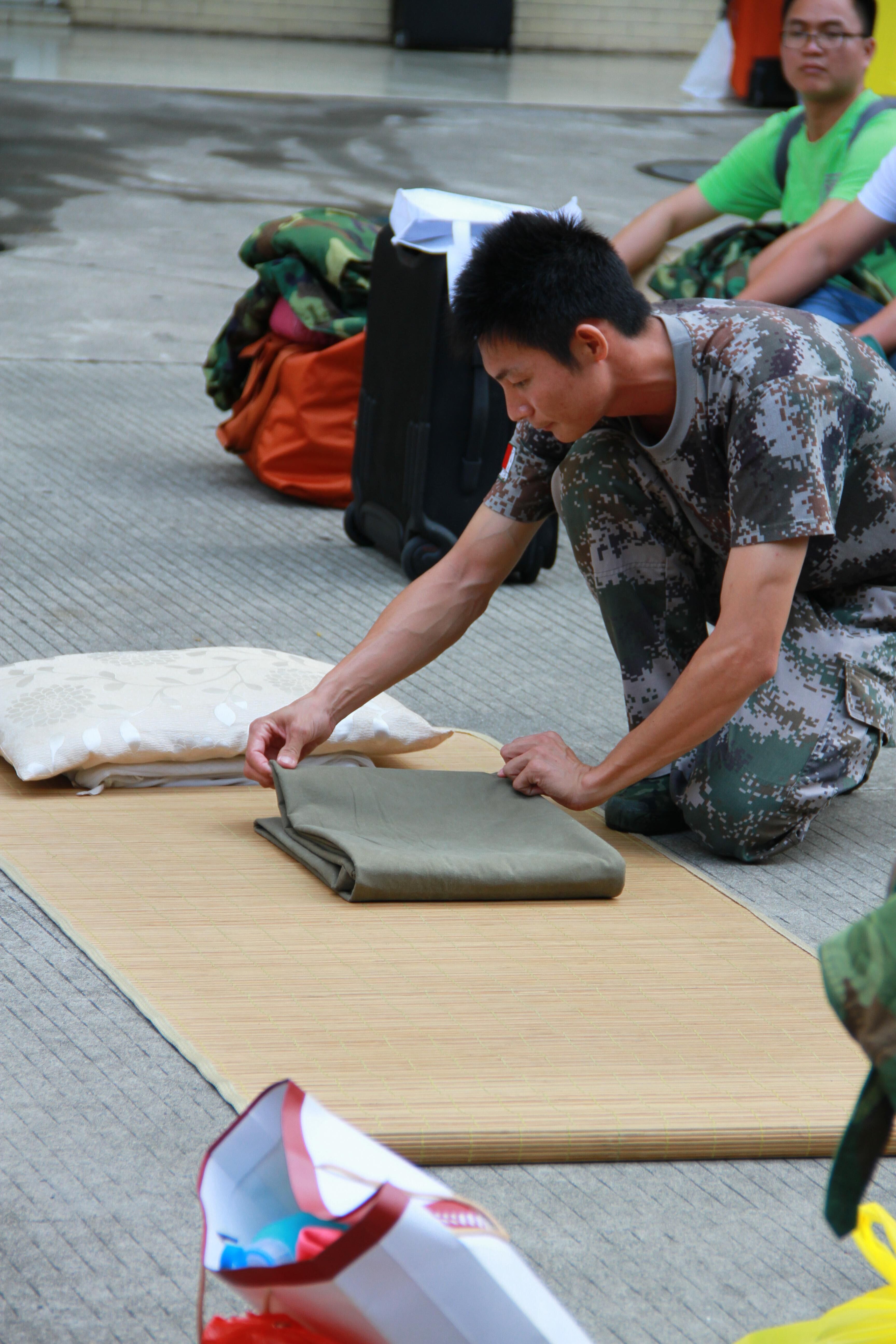首先,教官很严肃、耐心的为大家讲解教训科目的各种动作及要领,演示宿舍生活用品的整理和摆放规范。