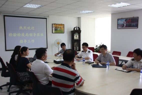 2015年6月12日,天津开发区出入境检验检疫局汪旭东副局长一行莅临我司参观考察。公司董事长包万军、副总经理孙建然、党总支书记杨春连及相关人员参与了接待工作。