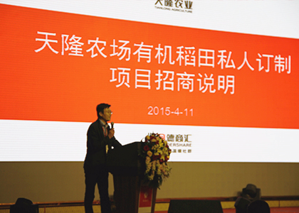 天隆有机米,香沁德友心。2015年4月11日,中国德商汇“互联网+全球巡回第一站暨德商汇成立大会”在春暖花开的深圳地召开,本次大会由中国德商汇和中国社群联盟主办,北大汇丰和京东商学院等协办,邀请诸多行业专家、成功企业家悉数登场,社群领袖孔剑平、京东商学院马成功、产融专家李益诚等,用全新互联网思维为我们破解企业运营困局。深圳天隆农业有限公司作为创会会员单位,参与了大会并展示了公司的自主品牌——天隆大米。