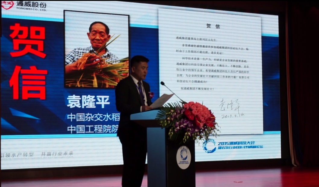 2015年4月17-19日,天津天隆公司董事长包万军应邀参加了通威股份有限公司和中国林牧渔业经济学会饲料经济专业委员会共同主办的2015通威科技大会。