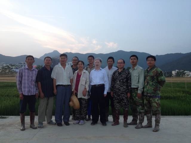 2014年3月17日,武汉大学朱英国院士赴国家粳稻中心和天隆公司三亚市南繁基地考察。中心主任、公司技术总监华泽田研究员就南繁基地整体情况及育种材料向朱院士进行了介绍。