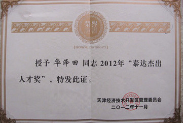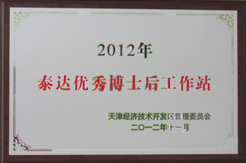会议公布了天津开发区(南港工业区)“泰达杰出人才奖”、“泰达友谊奖”、“泰达科技型中小企业优秀创业个人奖”、“泰达高技能人才奖”、“ 泰达优秀博士后工作站”、“泰达科技型中小企业优秀创业团队奖”等奖项进行了颁奖。我公司荣获“泰达优秀博士后工作站”奖项,党总支杨书记代表公司上台领奖;公司技术总监华教授荣获“泰达杰出人才奖”。