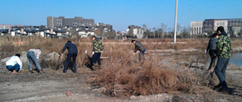 为方便十二大街科研基地周边绿化施工,公司组织员工对拟绿化地块、道路两侧、低洼地段的杂草、石子等进行了彻底清除。呼啸的寒风丝毫挡不住大家的劳动热情,在这里不分年龄、职务、学历,只有热火朝天、挥洒汗水的劳动场景,“甘于奉献、任劳任怨”的企业精神在这里得到完美诠释。