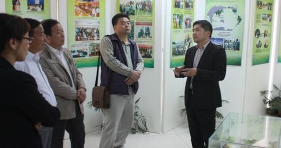 客人一行在包董事长、华教授的陪同下,先后参观了公司三楼杂交水稻科技展厅和12大街科研基地。