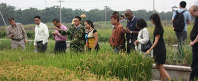 客人一行参观了公司三楼杂交水稻科技展厅,在二楼培训室听取了公司有关产品介绍和产业推广方面的专题报告。在十二大街科研基地,科研人员向客人详细介绍了我公司杂交粳稻种植情况和品种类型等。