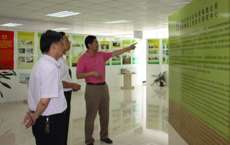 市局领导在杨总的陪同下,参观了我公司杂交水稻展厅,杨总向客人介绍了杂交水稻的发展历史和我司在该领域取得的成绩等。