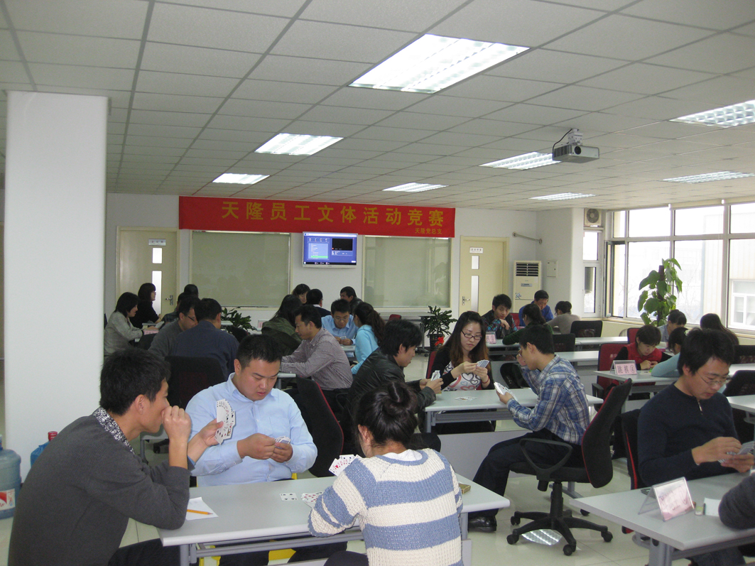 为了增进不同部门同事之间的交流,活跃公司文化氛围,我公司于2011年12月6日举办“天隆员工文体活动竞赛”。比赛项目分为跳棋和斗地主两大项,比赛设一、二、三等奖,对优胜者给予物质奖励。