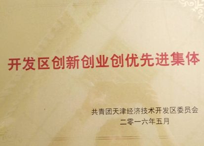 2016年8月,为表彰先进,激励各基层团组织、团干部和广大团员青年更加奋发有为、再创佳绩,通过考核与评选,共青团天津经济技术开发区委员会向押球官网等20个基层组织授予“开发区创新创业创优先进集体”称号。