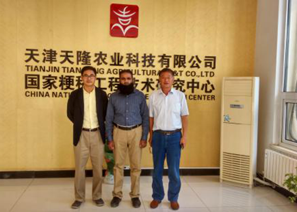 天隆农业公司总经理杨飞、技术总监华泽田和国际事业部总经理眭丽英接见了MR.KHAN,并陪同参观了天隆农业公司育种基地、公司展厅等地,参观结束后双方洽谈了下一步的合作事宜。